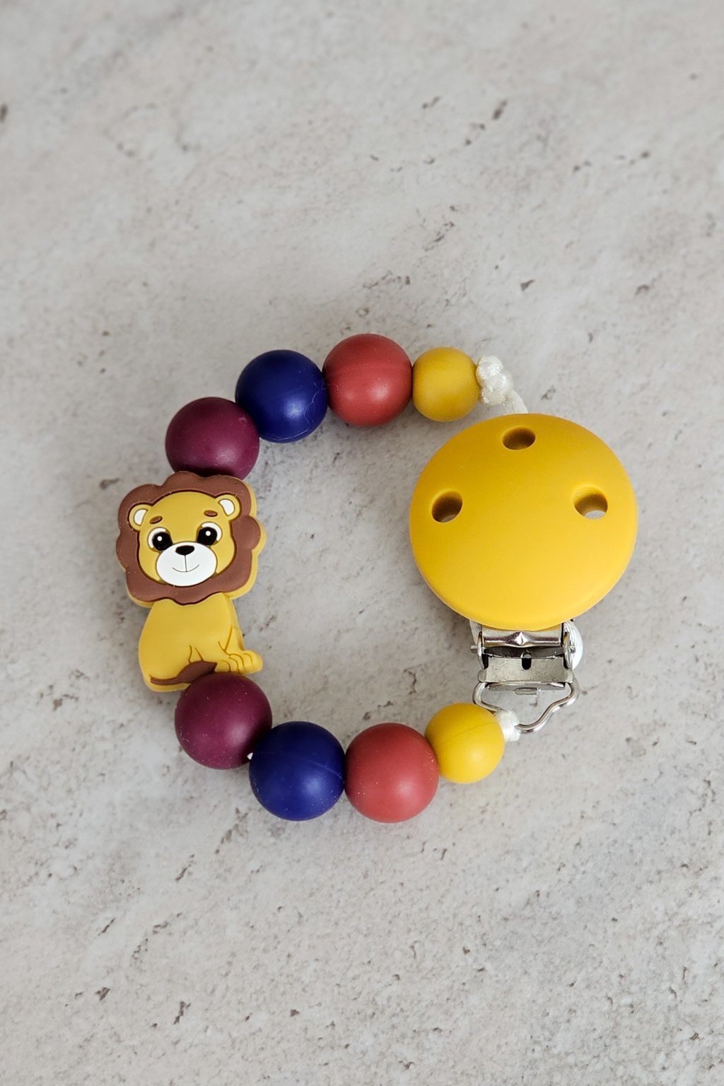 Připraven na dobrodružství? Tento silikonový klip s roztomilým lvíčkem přináší hravou atmosféru afrického safari přímo do každodenního života vašeho miminka. Kombinace sytě žluté, bordó, hořčicové a námořnické modré vytváří živý, ale vkusný barevný mix, který ocení kluci i holky. Klip je nejen stylový, ale také bezpečný – korálky z potravinářského silikonu jsou vhodné pro kousání a pomáhají při prořezávání zoubků.
