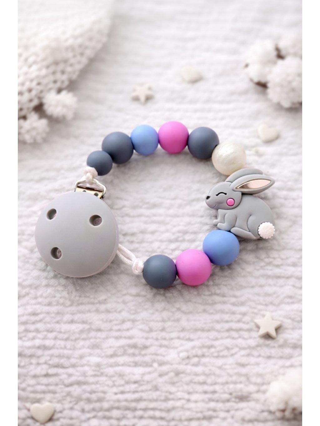 Hledáte originální a bezpečný klip na dudlík pro miminko? Tento silikonový dudlíkový klip s roztomilým šedým králíčkem je ideální volbou. Kombinuje potravinářský silikon s praktickým klipem, který snadno připevníte na oblečení, čepičku nebo šátek. Barevné korálky zaujmou děťátko a zároveň poslouží jako jemná pomůcka při prořezávání zoubků.