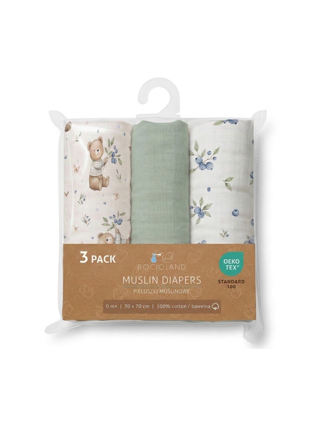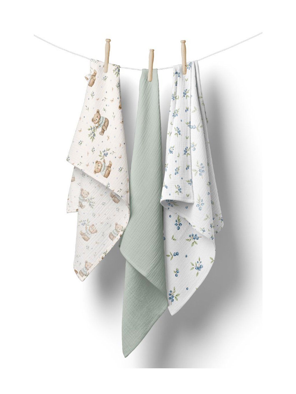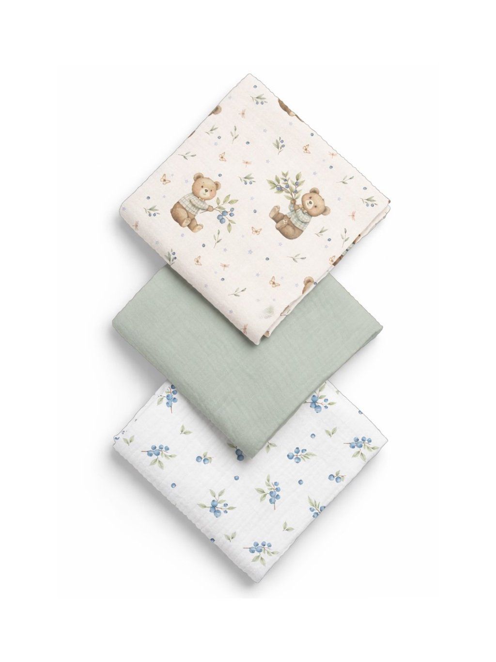 Mušelínové pleny - zelené, medvídek a borůvky 70x70 cm