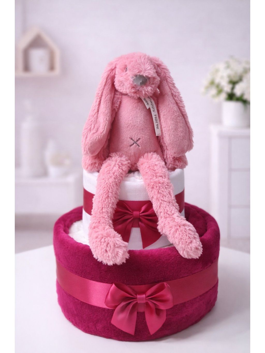 Plenkový dort v nádherné výrázné barvě, který nikdo nepřehlédne. Dort z plenek je měkoučký a strašně moc heboučký. V měkoučké dece se budou miminka cítit jako v ráji a k tomu heboučký králíček k tulení a mazlení. Nejlepší kombinace dárku pro miminko :-)